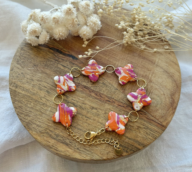 Bracelet trèfles - orange/fuchsia